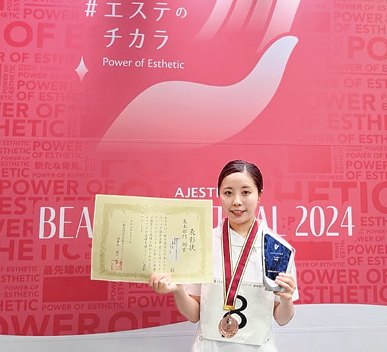 エステティックコンテスト全国大会出場 実績多数!コンテストで入賞するために高い技術を身につけ、現場で即戦力になれる力を養います。