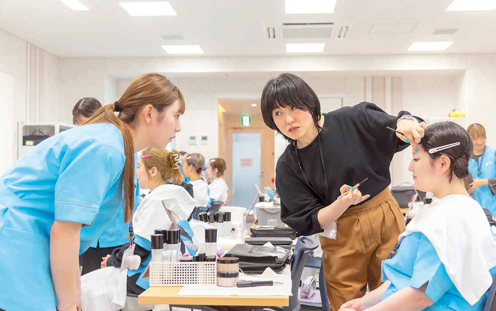 メイクの基礎を学び、スキンケアからメイクアップの技術を習得します。