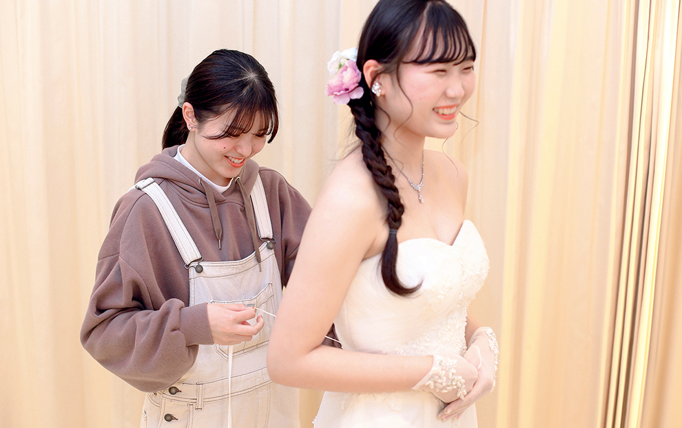 ブライダルシーンに合ったヘアメイクを、基礎から応用まで学習。流行などを意識しながらテクニックを磨きます。