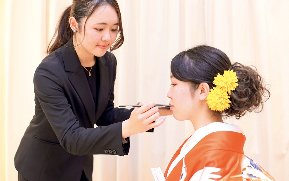 様々なシーンを予想しながら和装・洋装メイクの提案ができるような力を身に着けます。