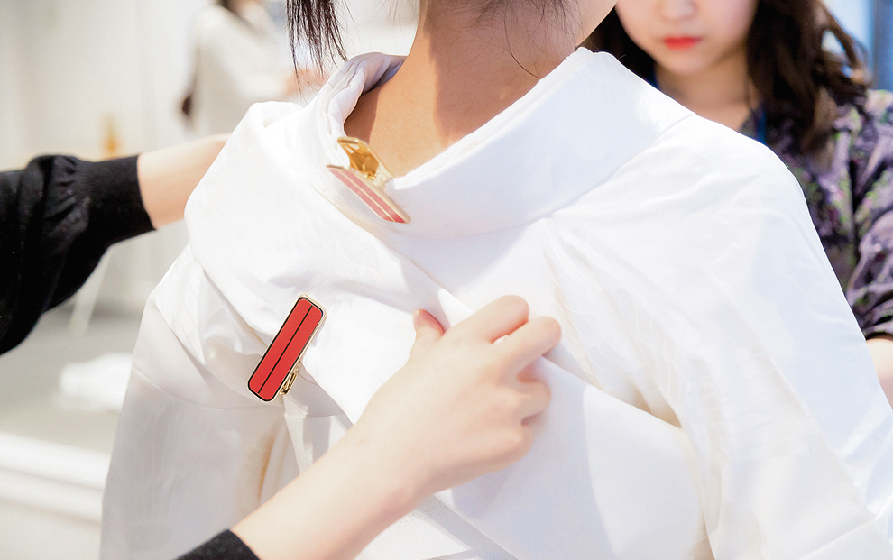 挙式の際に花嫁が着る白無垢や、お色直しの際の色打掛など、特別な着物の着付け方を身につけます。