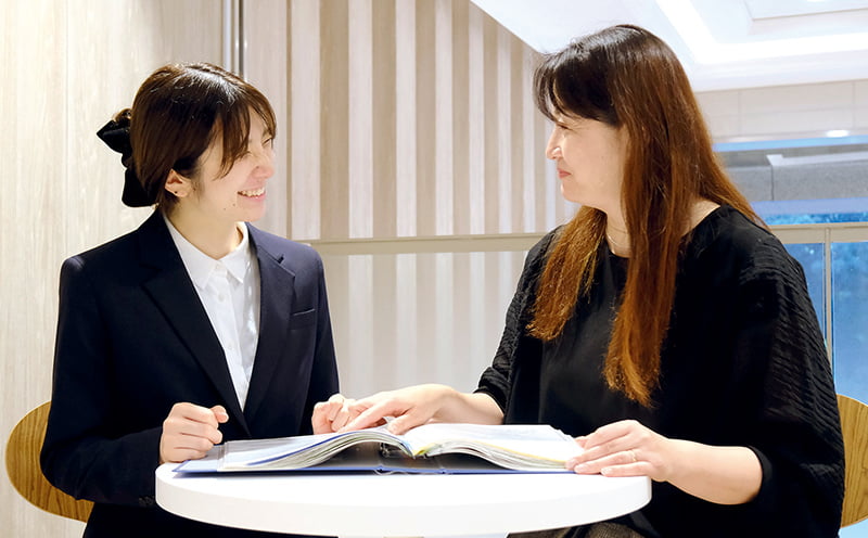 学生一人ひとりの個性や実力をしっかりと把握しているクラス担任と、就職したいエリアの情報に詳しいエリア担当教員の2人で、就職活動をガッチリとサポート。よりリアルで的確なアドバイスを行います。